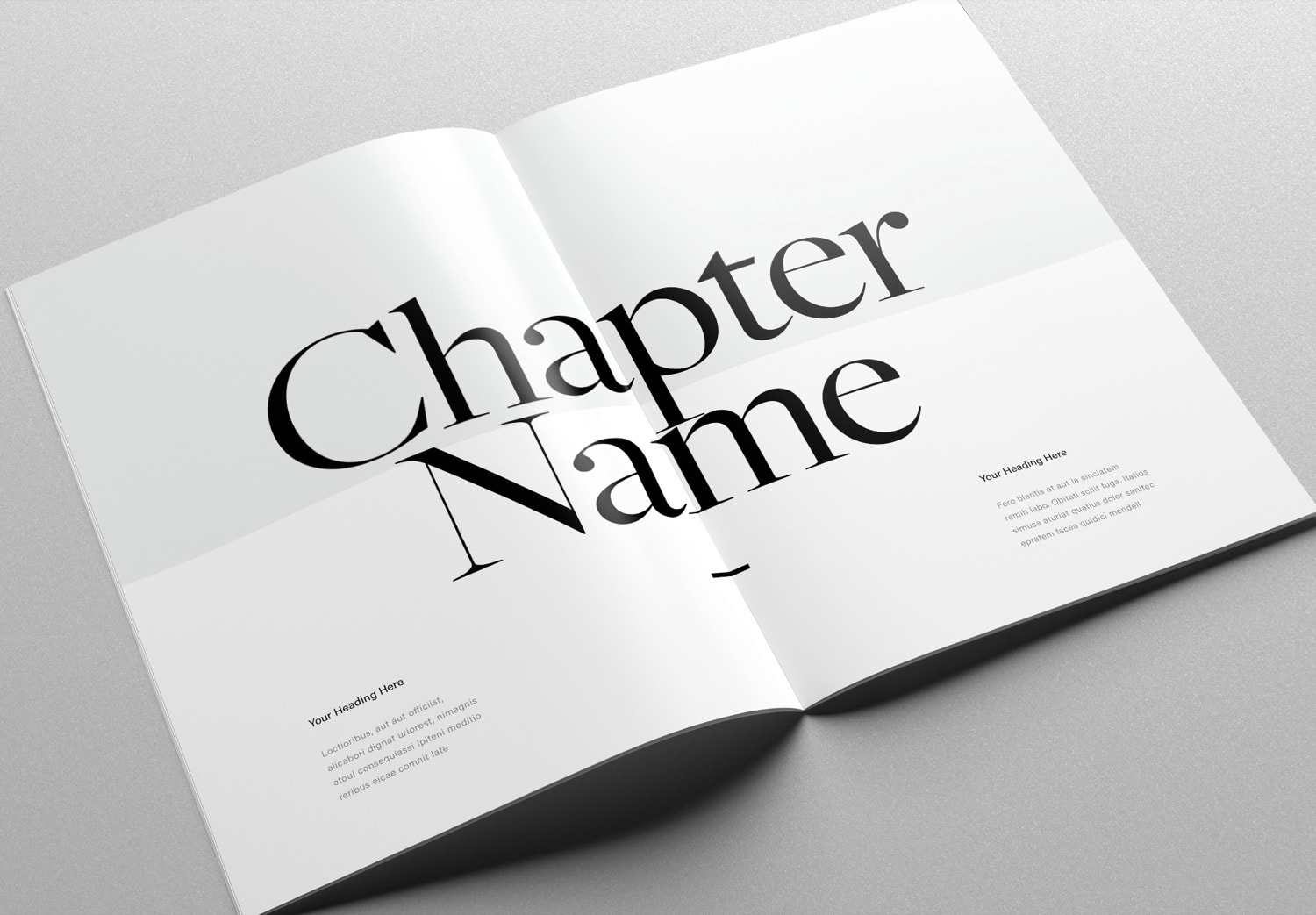 The cover sets the mood and direction of the content inside. This cover features a clean and modern style. It uses a serif font to create a soft and unique feeling on a white and gray background. Your cover image stands out clearly with this design. This style works well for showcasing work such as photography, product design, architecture, and interior design.