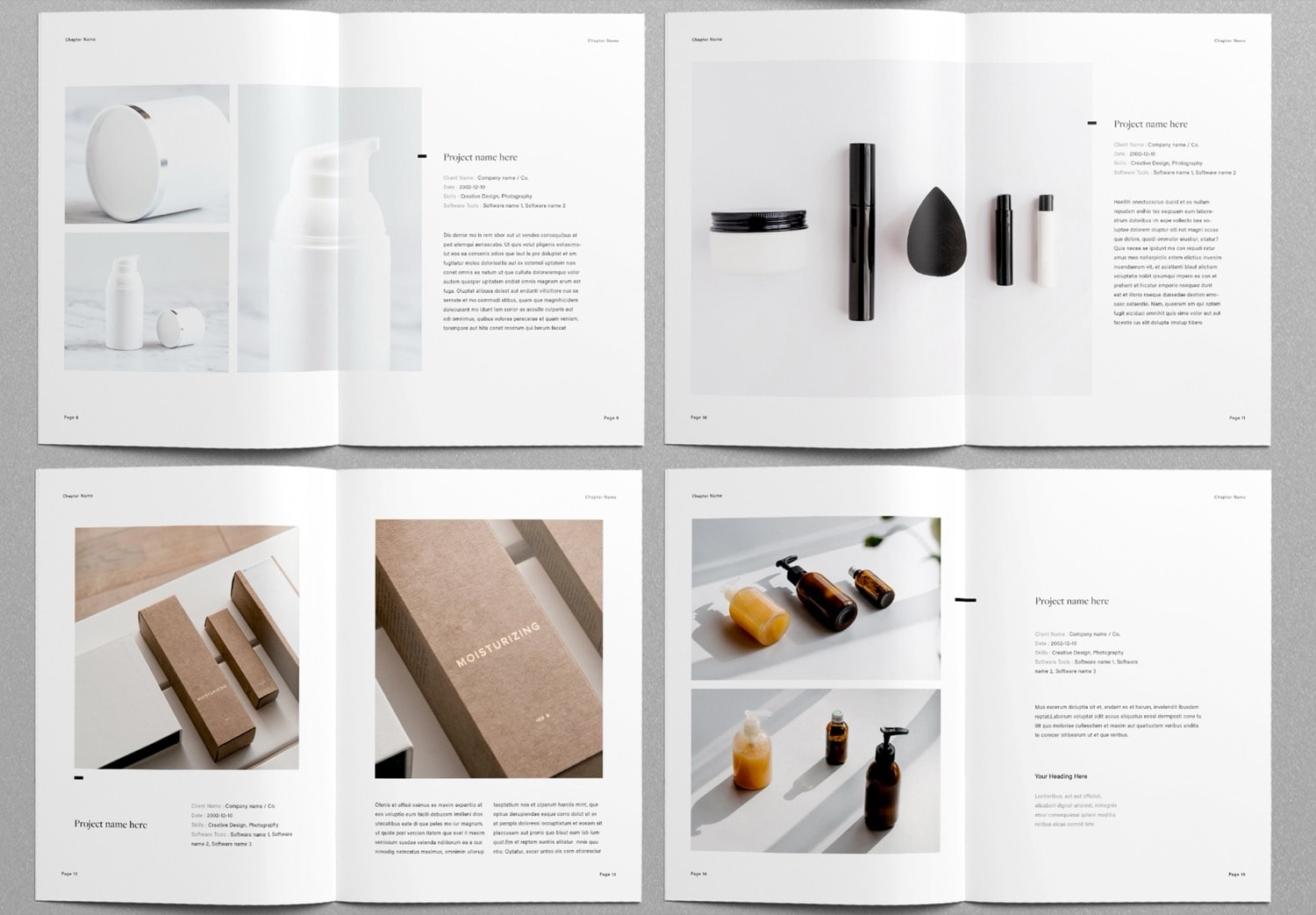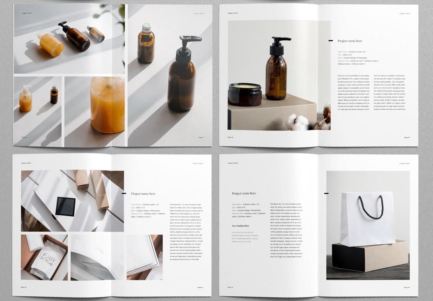 Each page to showcase your projects and images comes with a different layout design. You can choose the pages that best fit your content and rearrange them easily by dragging and placing them in the order you want. The template includes paragraph styles and object styles, which makes it flexible and easy to customize.