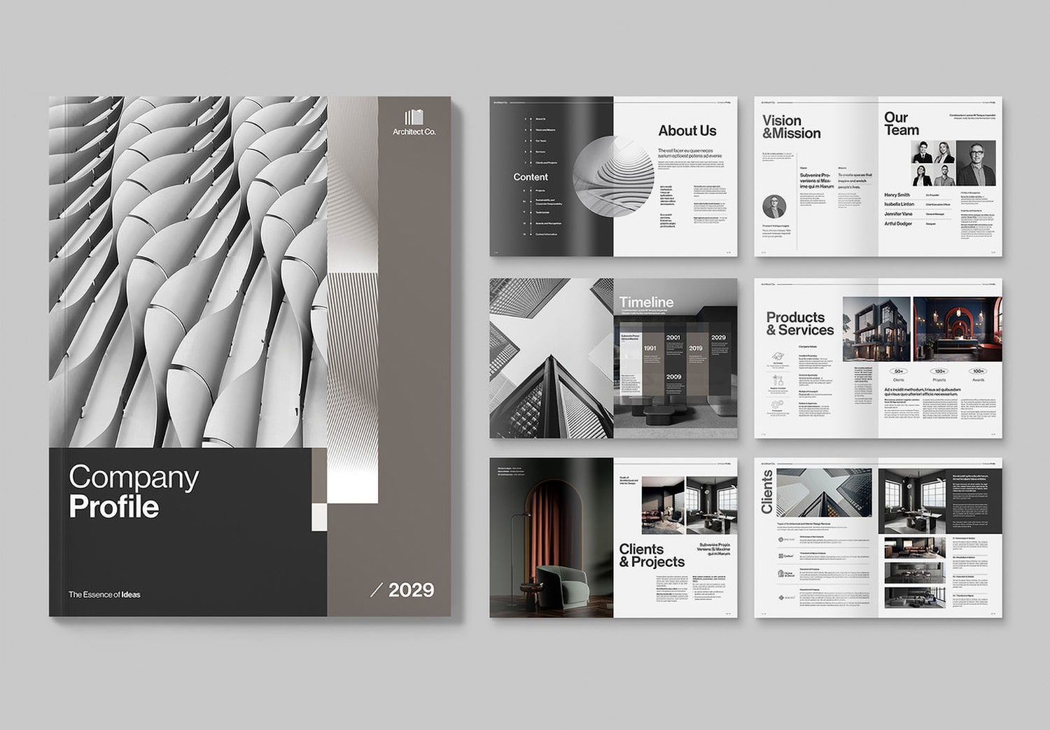 If you are a photographer, architect, brand designer, or web designer with strong skills in your field, you need an effective way to present your work. A well-designed portfolio helps promote your projects, build credibility, and reflect your personal identity at the same time. This modern portfolio template was designed by the experienced graphic designer Grkic Creative, whose work appears widely on Adobe Stock. This is a popular template because it combines a modern aesthetic with a clean and structured layout. The design also feels strong and confident through its typography and layout composition. The pages highlight both content and images in balanced proportions. The template includes 21 ready-to-use pages in A4 size, giving you plenty of space to showcase your work.